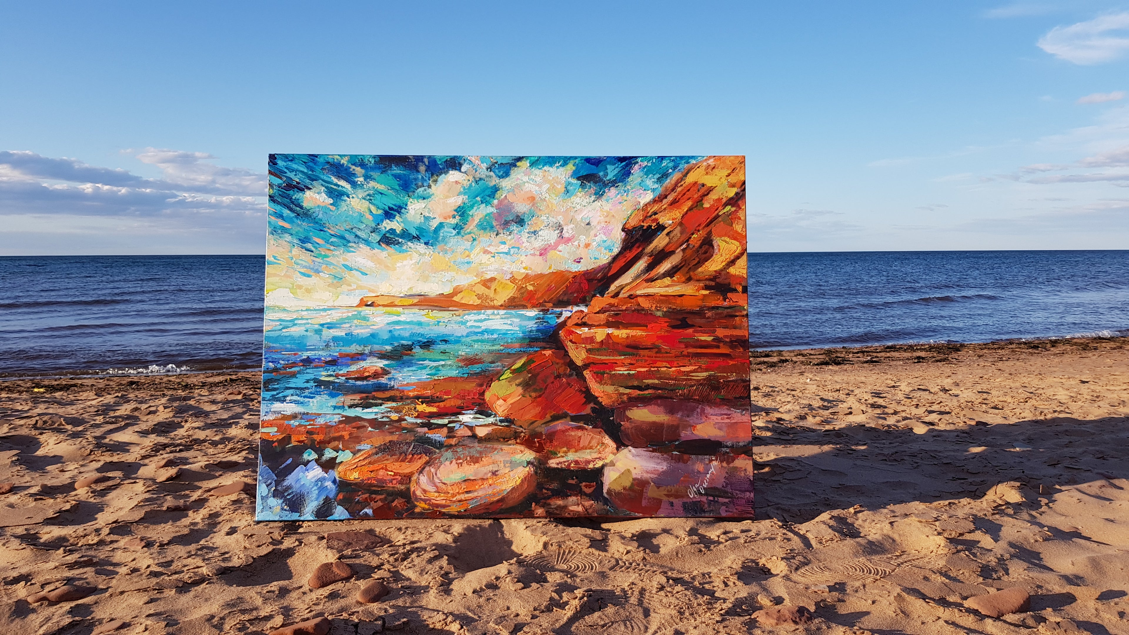 Olga Oresanya is a Canadian artist based in beautiful Prince Edward Island. Born in Russia and later living in Nigeria, where she worked as an art teacher, Olga brings a rich blend of cultural influences into her work.