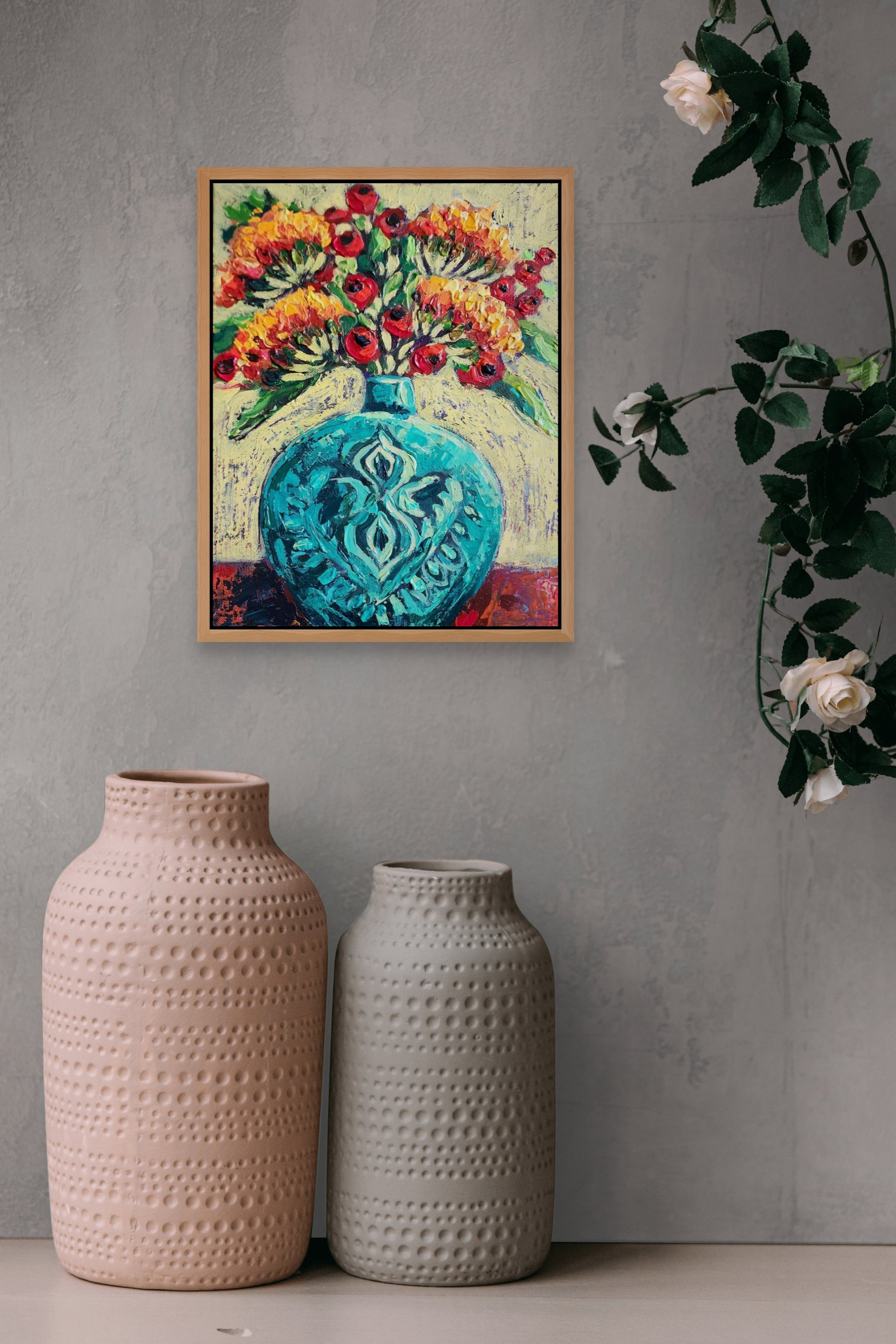 Double coated with Vanish to protect the painting from sunlight and dust.