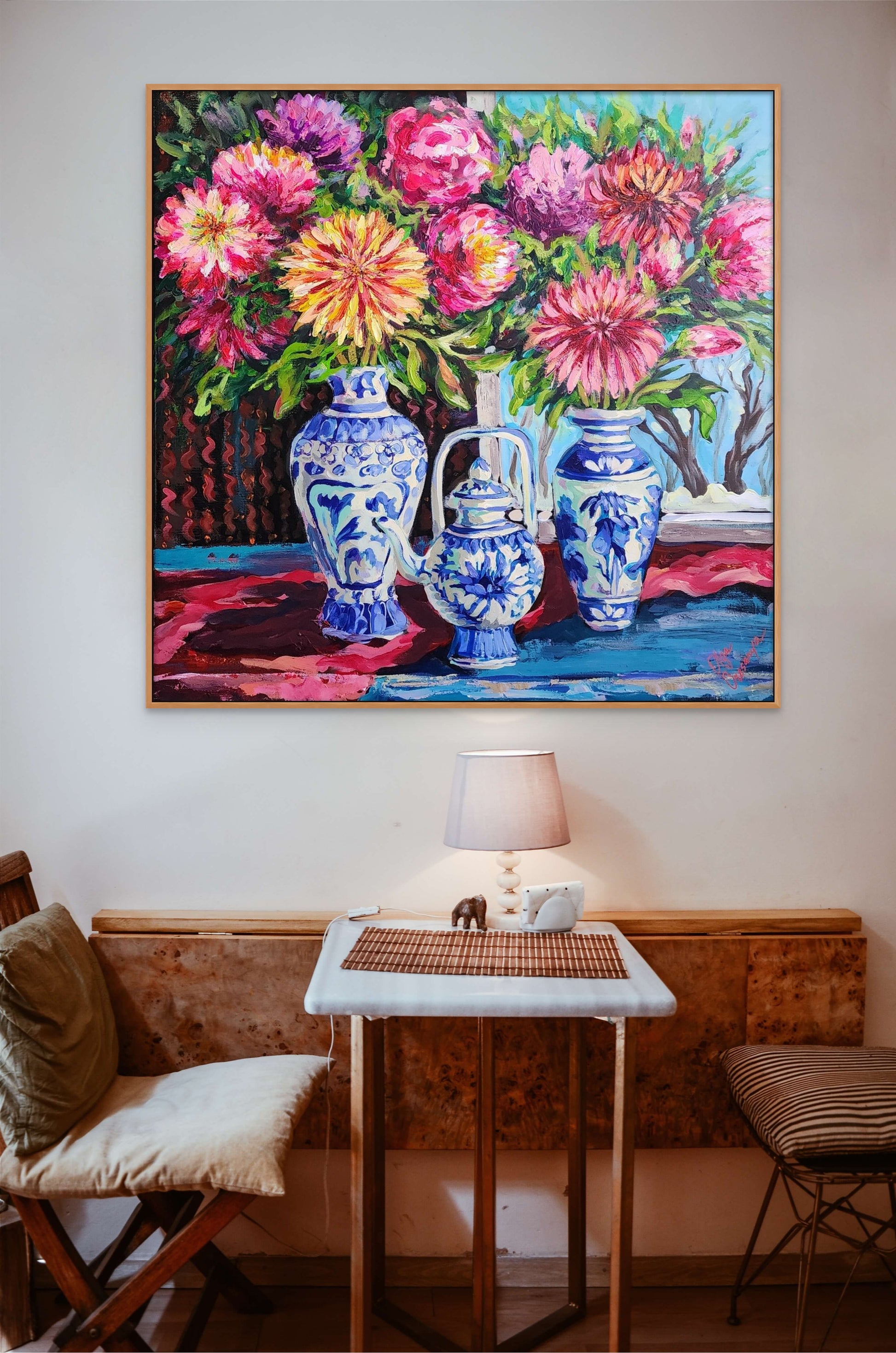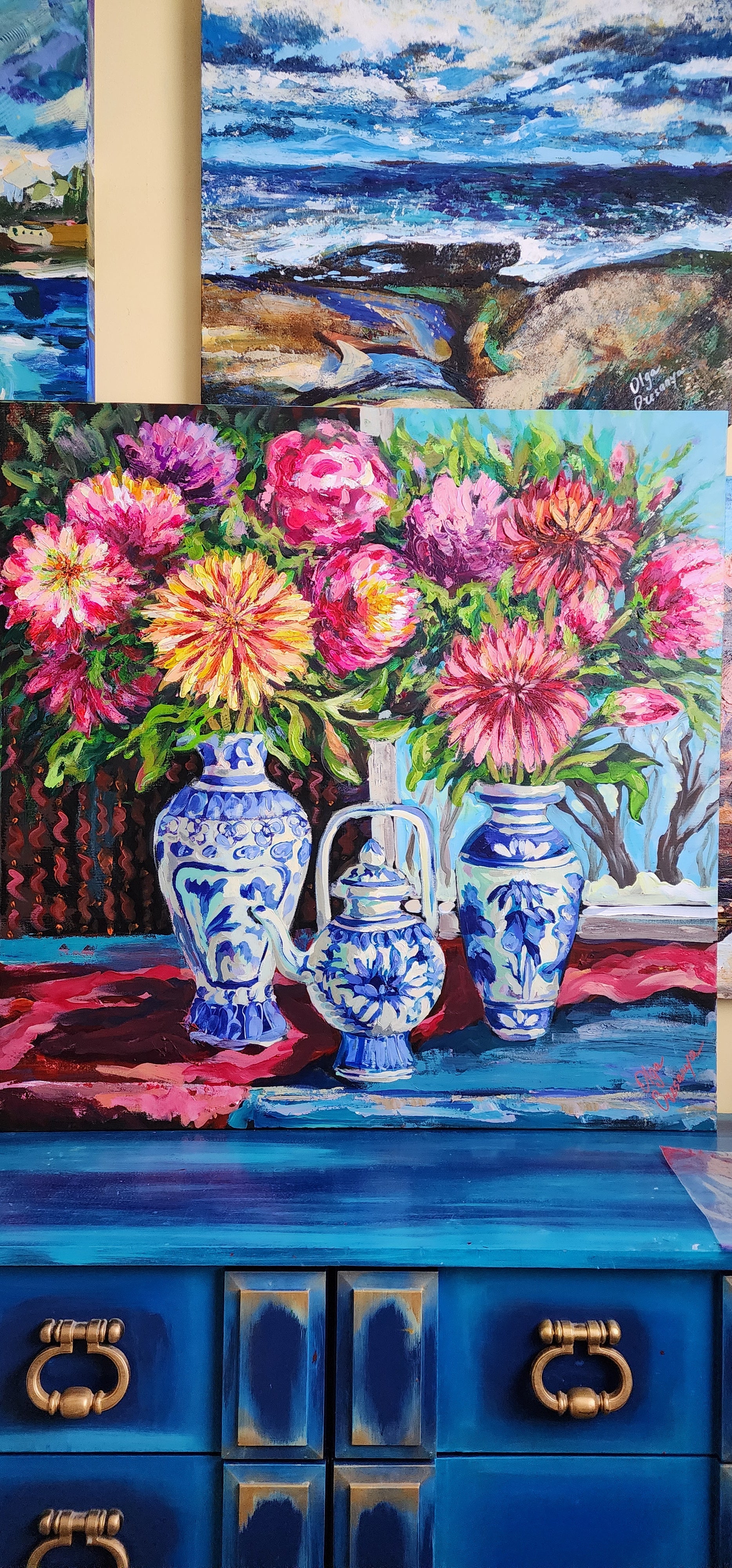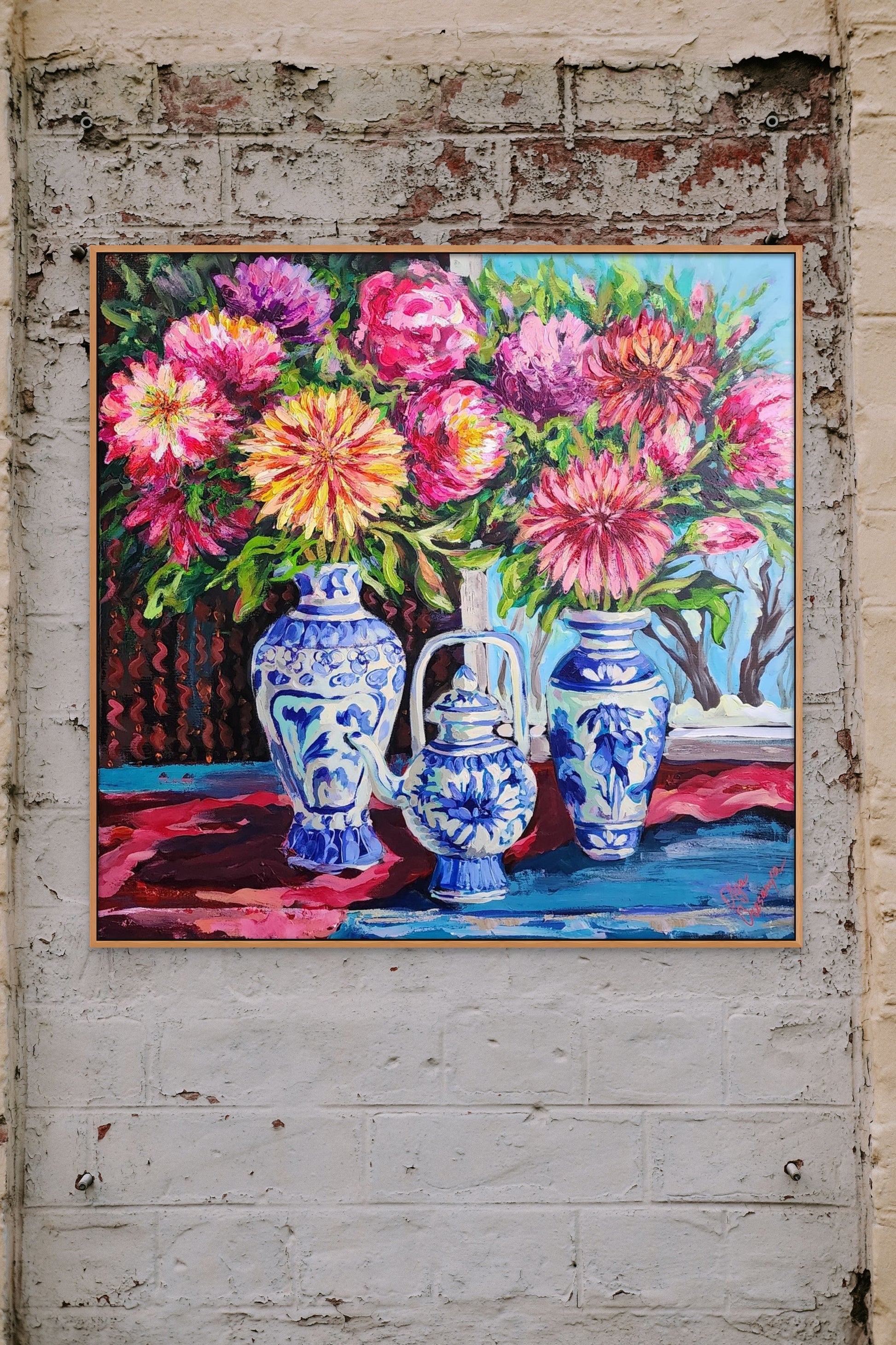 Double coated with Vanish to protect the painting from sunlight and dust.
