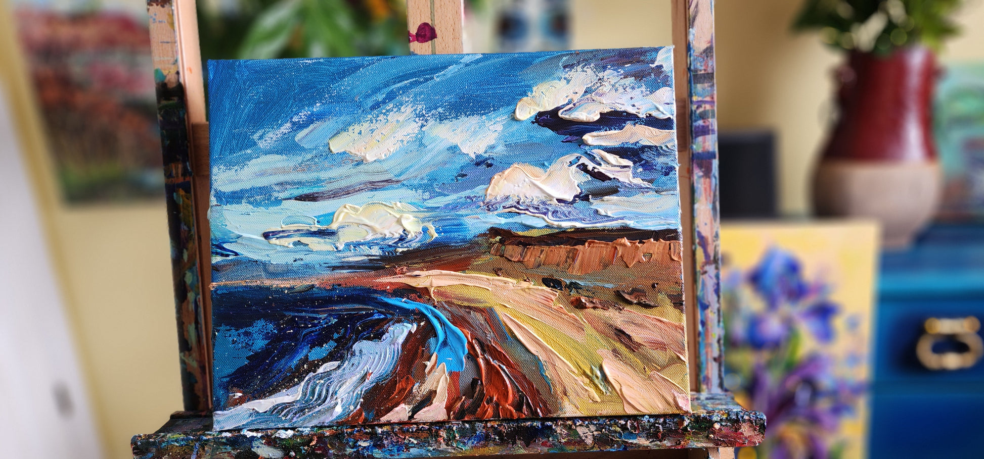 Double coated with Vanish to protect the painting from sunlight and dust.